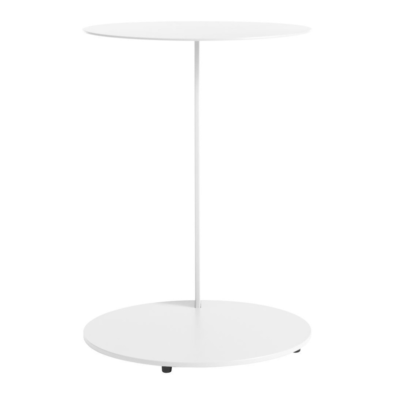 A striking slim spine of solid powder-coated steel supports a cantilevered round table top and base. Couple the well-tuned Note Side Table with sofas, lounges and beds to create a floating workable surface in a pinch.