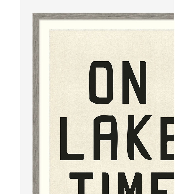 With the feel of a vintage camp flag, On Lake Time brings power and simplicity to your decor. The giclee print on raw canvas has frayed edges and is mounted on a mat in a shadowbox, for extra textural display and a refined gallery feel.