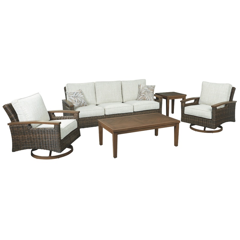 Pretty enough for trendy interiors, yet durable enough to weather the elements, the Paradise Trail outdoor sofa rises to the challenge beautifully. Handwoven resin wicker over rust-proof aluminum merges high style with low maintenance. Rest assured, though the exposed armrests and feet look remarkably like wood, their sturdy aluminum construction is perfectly suited for alfresco living. Plush seat cushions and throw pillows wrapped in high-performing Nuvella fabric aim to please.