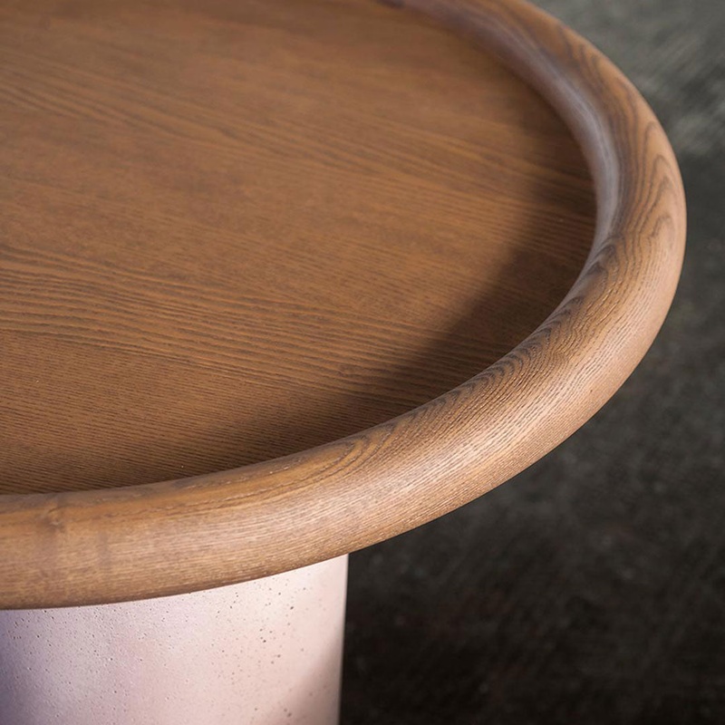 Designed by Studiopepe, the Pluto coffee tables are essentially sculptural shapes and bold details that call to mind cubism. Available in two sizes, the coffee tables comprise a solid wood table top with bullnose edge and three massive concrete legs of different diameters, which lend the table vertical movement. Depending on the viewers perspective, its appearance seems to change.