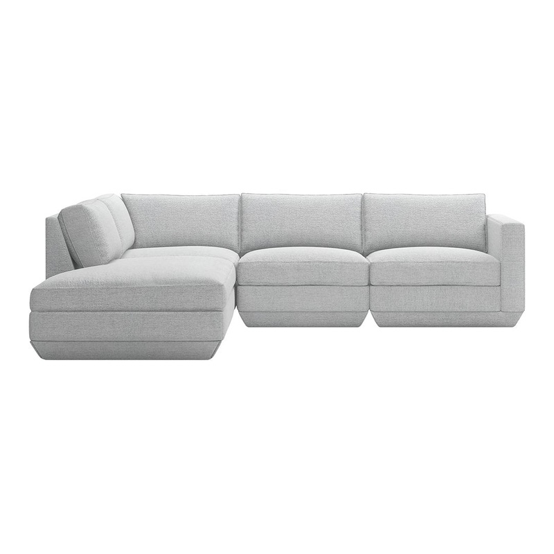 The Podium Modular Collection is an adaptable seating system that brings modern elegance and luxurious comfort to any space. The Podium features seven core components (Right Arm, Left Arm, Armless, Corner, Ottoman, Left Lounge and Right Lounge) that can be arranged in unlimited configurations to suit any vision or layout. Components can then be easily reconfigured or added later to adapt to your evolving lifestyle. Each component showcases a relaxed silhouette inspired by 1970s Modernism: a low and deep sit created by plush seat and back cushions (filled with eco-friendly synthetic down derived from recycled water bottles), and an attractive, subtly angled, chamfered base. The frames are constructed with kiln-dried 100% FSC-Certified hardwood in support of responsible forest management.