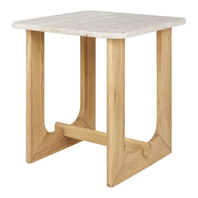 The Portico End Table showcases an alluring travertine slab surface and elegantly crafted solid wood base in Walnut or White Oak. The warm, natural travertine grain creates an organic beauty that is unique to each design, reinforced by gently curved corners. These curves are mirrored in the base – with graceful forms and thoughtful proportions that blend the materials into a unified, sculptural accent. Portico is also available as a Coffee Table in square or rectangular size.