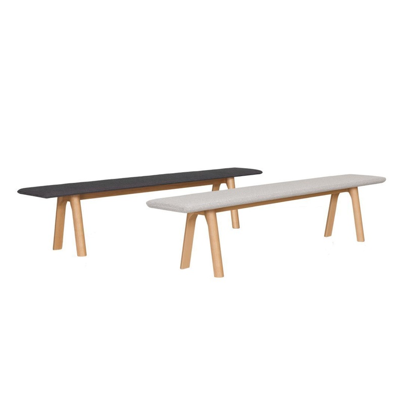 RAIL Bench – the bench fits the table RAIL. The RAIL Bench is available with wooden seat and upholstered.