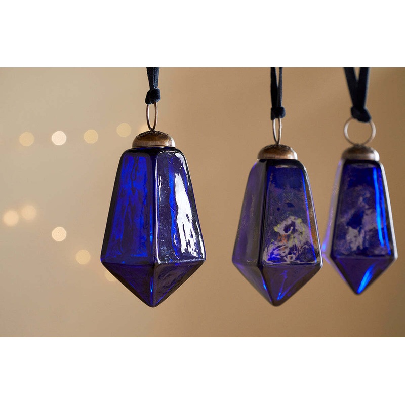 Deep indigo with an antique glass finish and a simple antique gold clasp, these Ratnam baubles are classically shaped to bring a traditional and irresistible jewel-like finish to a tree, seasonal wreath or table setting. Delicate yet structural, they add a pop of stand-out colour to your display, acting as both a foundation and finishing touch to a decorative theme. Mix with the smaller Ratnam Baubles to create and an intense, eye-catching display.