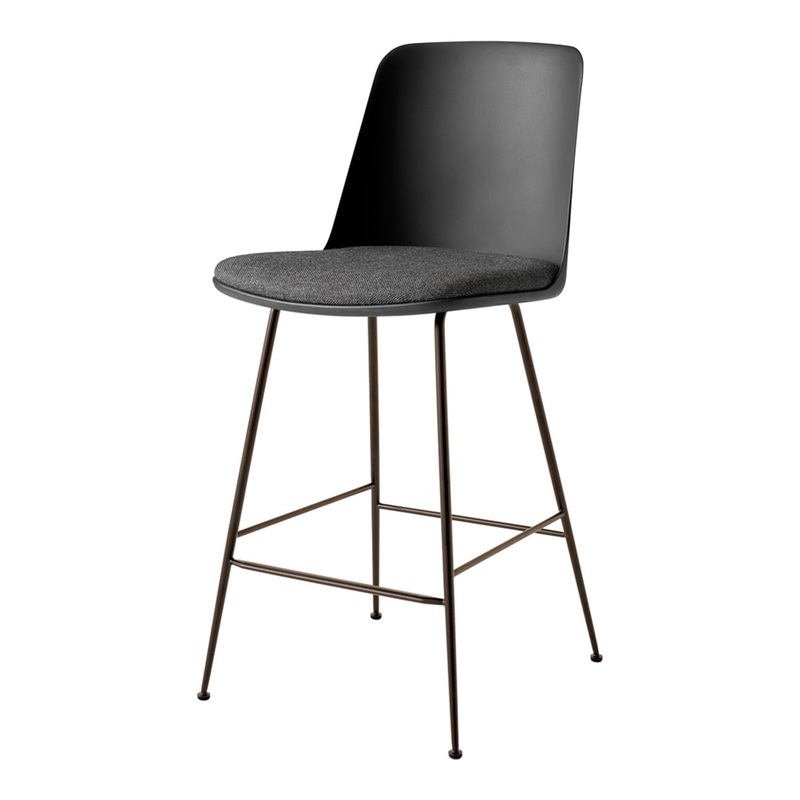 The addition of the counter stool and chair, and the bar stool and chair (HW81 HW100) has expanded the series with designs suited for an office workspace or hospitality venue. Compact and comfortable, these pieces feature the signature, recycled plastic shell. Upholstery is also available, while the steel tube legs come in black or bronzed.