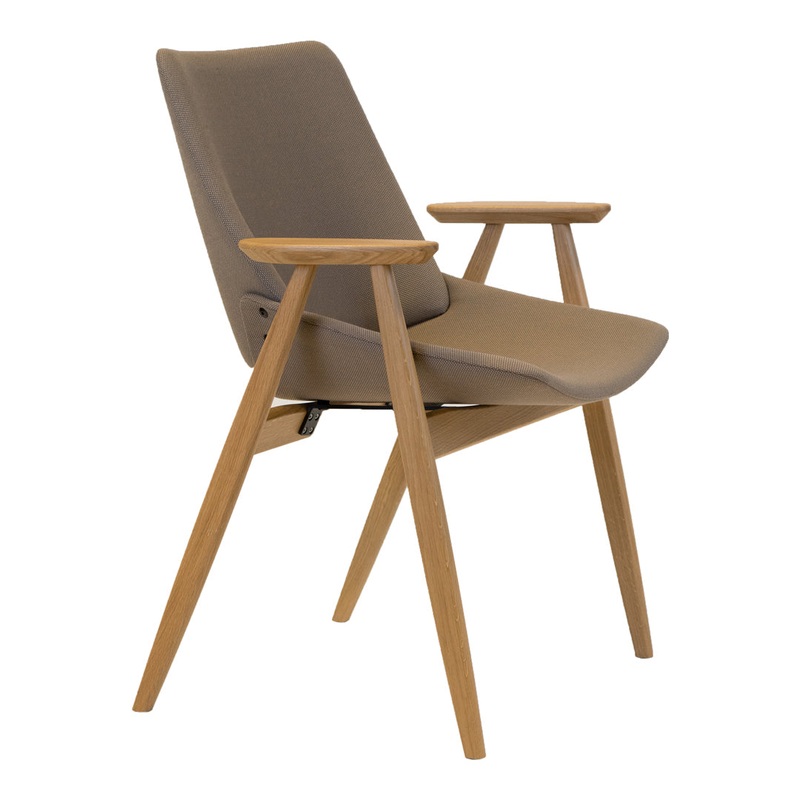 The Shell Wood Armchair has a natural presence thanks to the warmth of the solid wood and the plywood seat and backrest. The unimposing legs match the gentle appeal of the curved plywood. The seat or the entire shell can be upholstered in fabric or leather to enhance the chairs appearance and tactile quality.