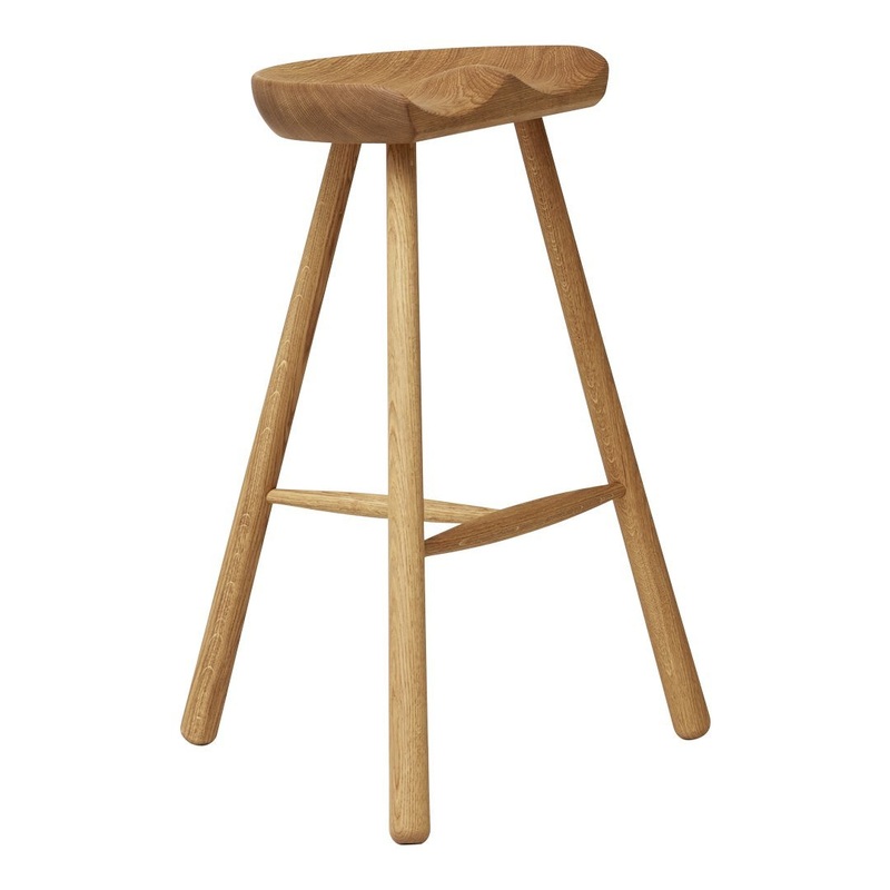 A true classic made in Denmark since 1936 where it still to this day is produced by our local joinery.The seat is shaped out of one large solid piece of wood and because of the variations in the woodgrain, every Shoemaker Chair is completely unique.Together, the turned legs and the stabilizing T connection create a harmonic and aesthetic piece of furniture with strong references to the Nordic design universe.