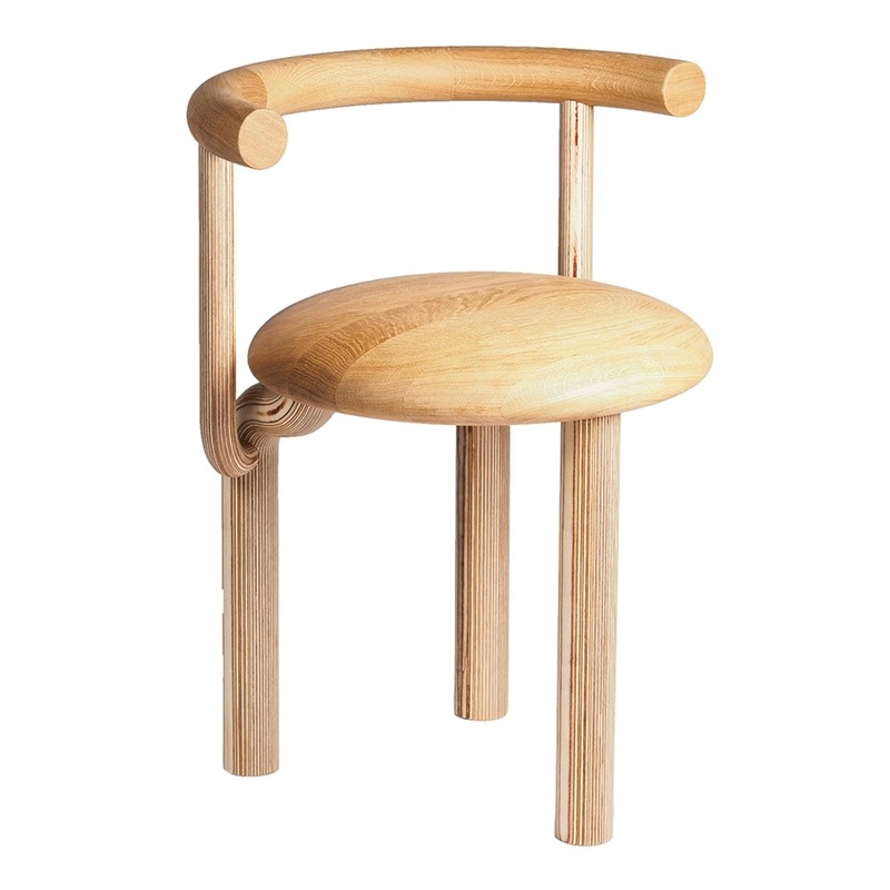 Sieni chair is a mushroom shaped, tree-legged round chair. Made of solid oak.