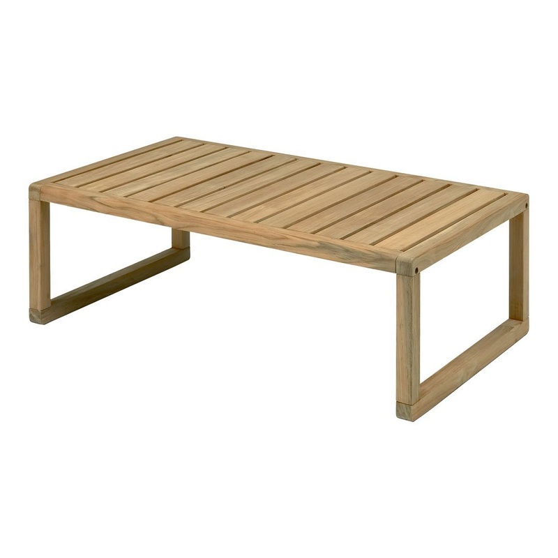 Virkelyst is a modern outdoor series designed with clean lines and high comfort. The table defines a negative space as the slatted tabletop rests on two square frames.