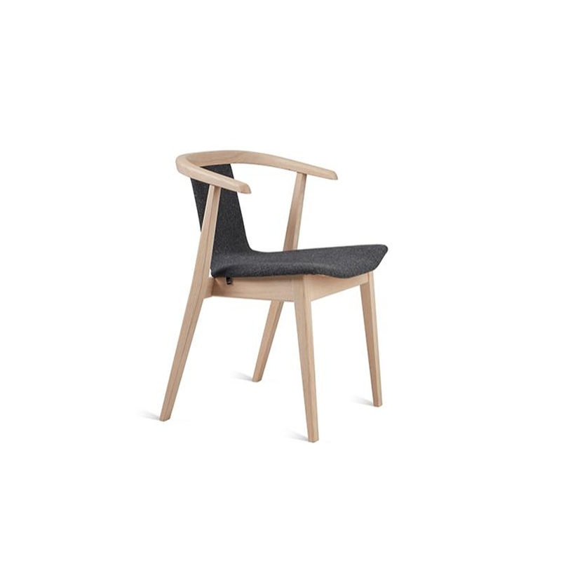 Expertly crafted with meticulous attention to detail, the #820 chair perfectly balances form and function, providing a truly unique seating experience. Its refined combination of clean lines and gentle curves showcases a striking contrast and seamless harmony, making it a standout addition to any setting. Featuring a press-moulded veneer backrest, a solid wood frame, and upholstered back, this chair boasts both strength and elegance. With comfort in mind, our design philosophy is evident in the ergonomics of the #820 chair, which draws inspiration from the embrace of a timeless wooden armchair.