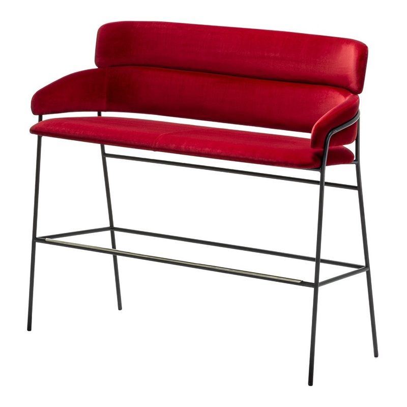 Tall two-seats sofa with chromed or painted steel frame, upholstered seat and back with flame-retardant polyurethane foam.