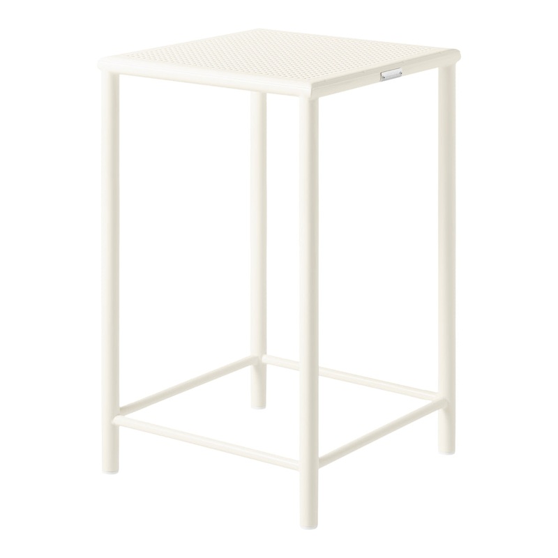 Taking up the motif of the T37 Woven Chair, the T37 Woven Square Stool can be used as additional seating or as a side table both indoors and outdoors. The lightness of its geometric lines and the finesse of its weaving contrast with the durability and purity of the steel, making it timeless. Available in various sizes, it meets many uses and is a decorative object in its own right.