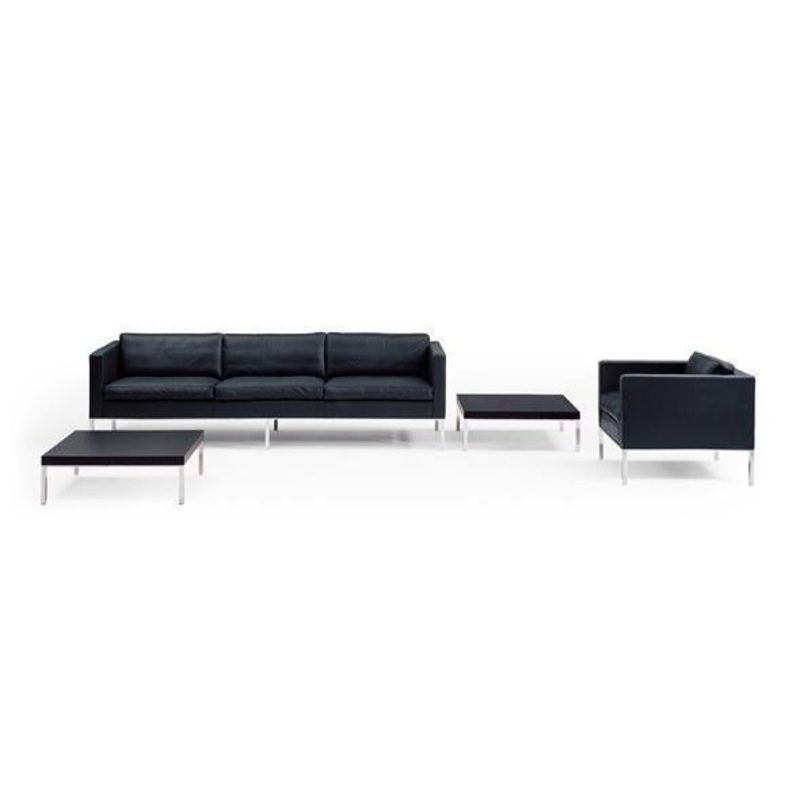 A modest table that matches the 905 sofa and is almost inseparable. The base of the table reflects that of the sofa, and vice versa. Both are scene-stealers. T905 is 79 x 79 cm square. The top is veneered, lacquered or solid oak with a chrome or powder coat base.