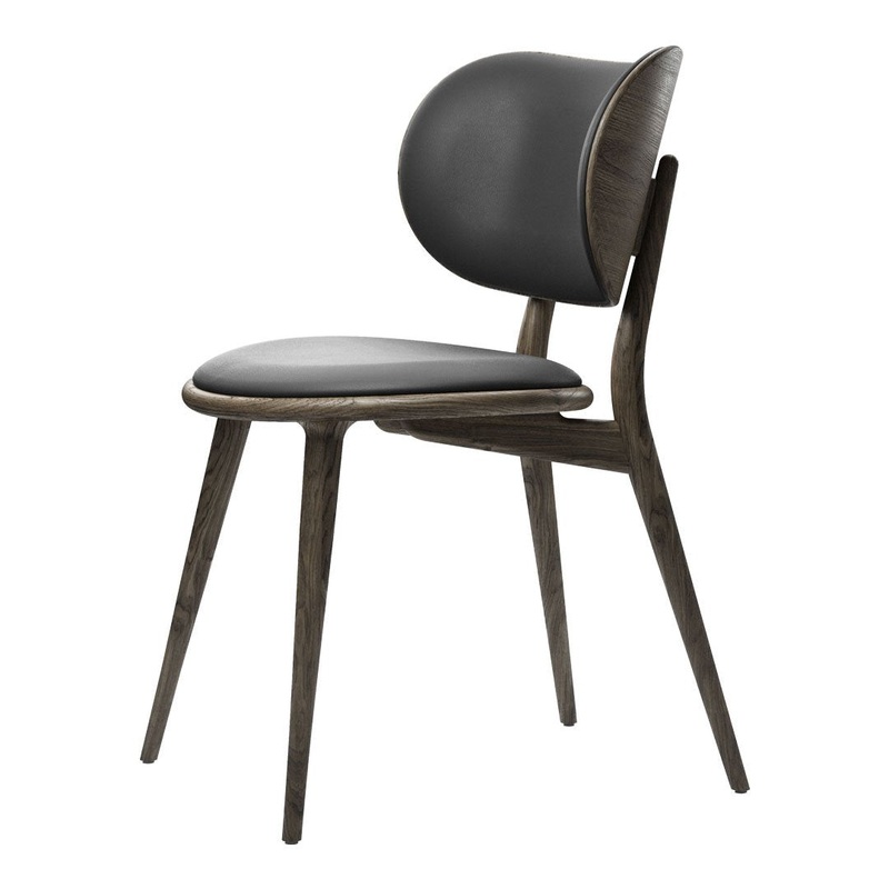 The Dining Chair designed by Space Copenhagen. The Dining Chair builds on High Stools beautifully fluid, sculptural and archetypalcharacter, adding a generously rounded backrest for a heightened sense of comfort. The backrest itself is upholstered in soft durable leather andis fully supportive and comfortable so that it outweighs the need for armrests.