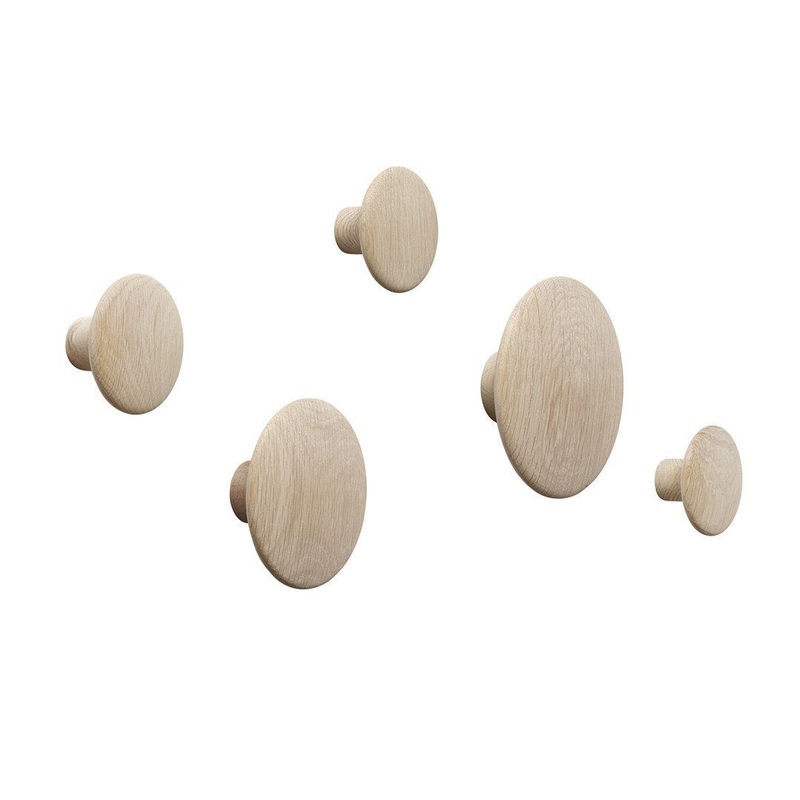 Produced from high quality wood, the coat hooks sculptured design can be arranged on the wall in exactly the pattern and color combination that is desired. The versatile Dots are ideal for offices, hotel rooms and reception areas. Set of 5 includes 1 large, 1 medium and 3 small Dots.