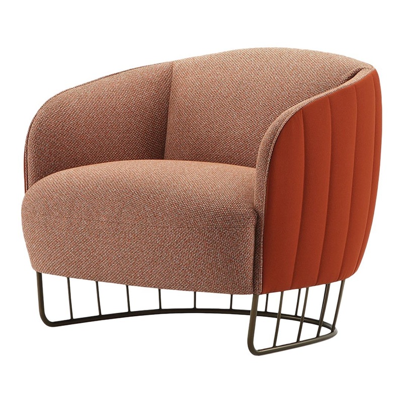 The Marie Antoinette-style seat, back and arms are made from flexible moulded polyurethane foam. The plain interior area can be upholstered in fabric or leather, the outer area is quilted to follow the barrel style lines of the base and is therefore only available in fabric.