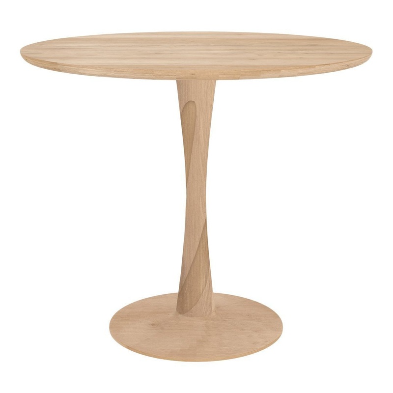 Airy with subtle complexities, the Torsion dining table incorporates advanced woodworking techniques to create a light table top with a stable base of sculptural elegance. The Torsion dining table is made of solid oak and is available in three sizes.