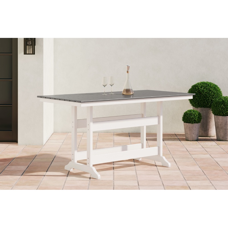 Gather friends and neighbors on the back deck or poolside to enjoy good times and make happy memories. Designed for easy-breezy living, this two-tone counter height outdoor dining table is made of durable MEGA TUFF HDPE material to withstand harsh weather. The table is made with stainless steel hardware and aluminum supports for extra strength. Raise a glass and make a toast to your comfortable outdoor lifestyle.