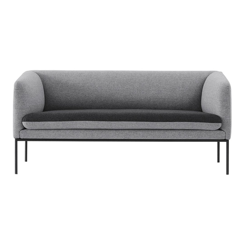 This modern and multifunctional 2-seater & 3-seater is all about contrasts, as a strict sculptural outer shape complements an inviting rounded inner with organic curves. The reversible seat cushion is dual-tone and can be turned around in a snap in order to let you decide whether you want a classic or a bolder look depending on your mood or personal preference. No matter which color you choose, this sofa has a timeless and clean look with its tight upholstery and simple frame in powder coated metal, yet with a feminine touch due to the soft inner curves and warm materials. In addition to the light and slim metal legs which give an elegant, floating expression the discrete size makes this sofa practical and easy to fit in to your existing furniture and mix with your personal style.