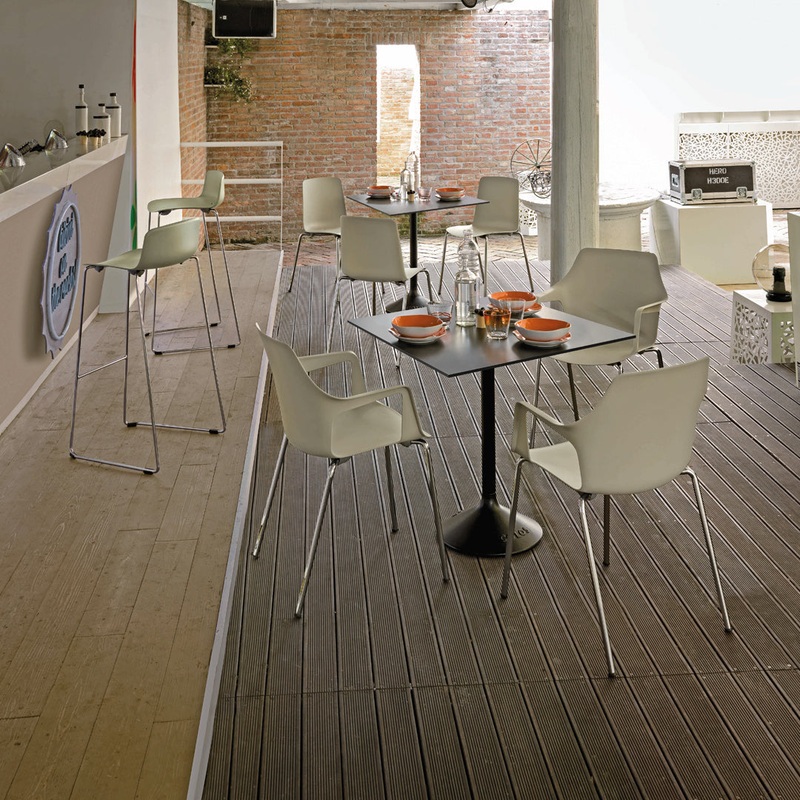 The barstool of the Vesper series is also be available with frame in tubular steel. This version provides additional choice for the VESPER 3 model, gaining an even more stable and solid appearance nevertheless maintaining its fresh and modern aspect.