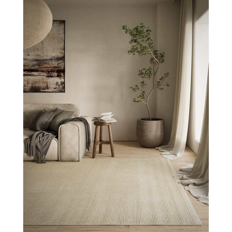 The Waverly Rug collection features high-quality machine rugs that showcase a unique high-low pile in durable polypropylene with accents of polyester. The warm ivory and neutral color palette is designed to echo the sophisticated Moroccan handmade rugs that are inspired by the minimalist Beni Ourain design category. Imperfect lines, subtle yet bold check patterns, and unique effects that mimic a carving technique, offer understated design options for your home.