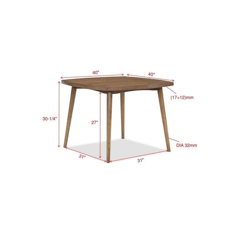 Add a touch of Mid-century Modern style to your space with this versatile dining group. The square table top with unique rounded edges sits atop sturdy splayed legs. Curved backs and upholstered seats provide comfort.