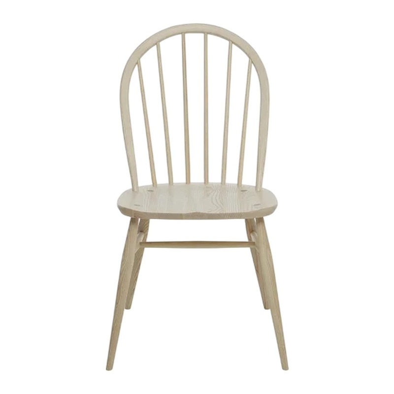 This distinctive Windsor dining chair combines strength and durability with classic elegance. The six ash spindles and curved seatback, alongside the sculpted saddle seat provide a comfortable and supportive sit. The chair bow is steam bent from a single straight ash rail. Traditional wedge joints, where the legs come through the seat and a wedge is then inserted into a cut, before the leg stump is hand sanded flush with the seat, to create a lovely design detail and a very strong joint. This chair furniture can be finished in your choice from wood and paint finishes that protects the timber, whilst enabling you to choose the look to match your style and decor.