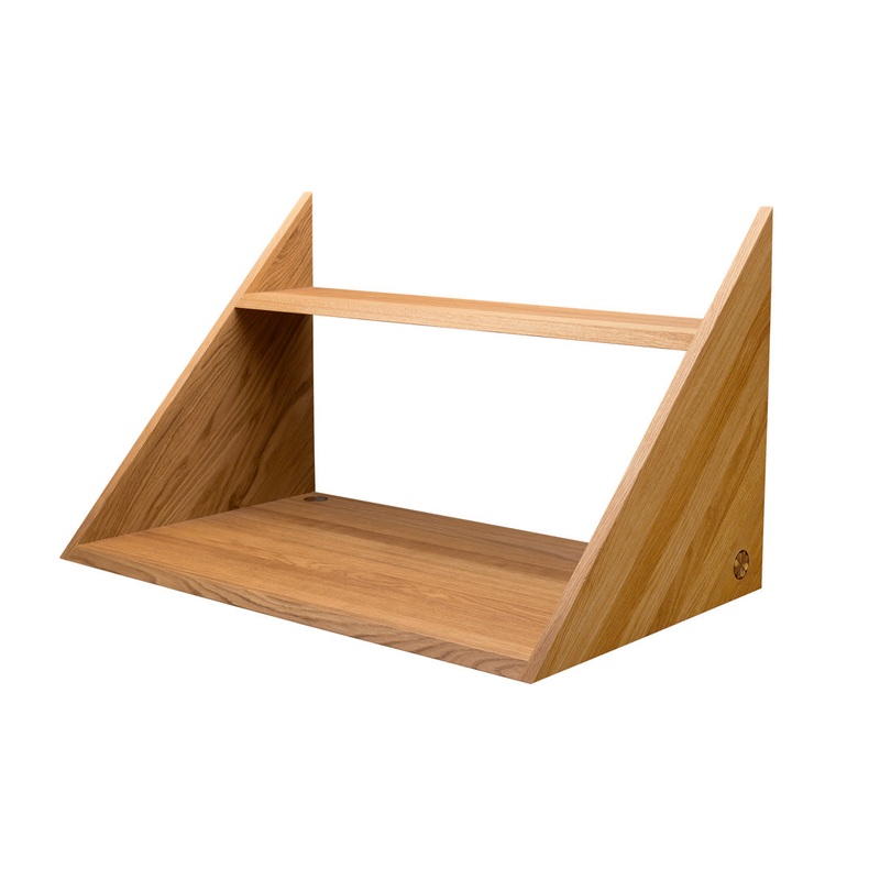 Sibast Furniture worked with danish artist Kasper Eistrup in developing the XLIBRIS series. Despite its apparent simplicity, XLIBRIS is brimming with small artisanal and functional details. These include a concealed cable outlet in the wall-mounted desk, enabling the elegant and discreet connection of a laptop, smartphone or lamp to the power grid. Both the shelf and the wall-mounted desk are assembled without visible screws, emphasising the impression of XLIBRIS as two integrated pieces of furniture that seemingly grow out of the wall.Kasper Eistrups artistic approach to design and his sense of detail are also evident in XLIBRIS, furnished with an exclusive brass emblem mounted on the side of both the shelf and the wall-mounted desk. The emblem is made up of four hearts joined into a four-leaf clover. The hearts symbolise a predilection for necessity, functionality, the material and the craft all of which were involved in the development of XLIBRIS.