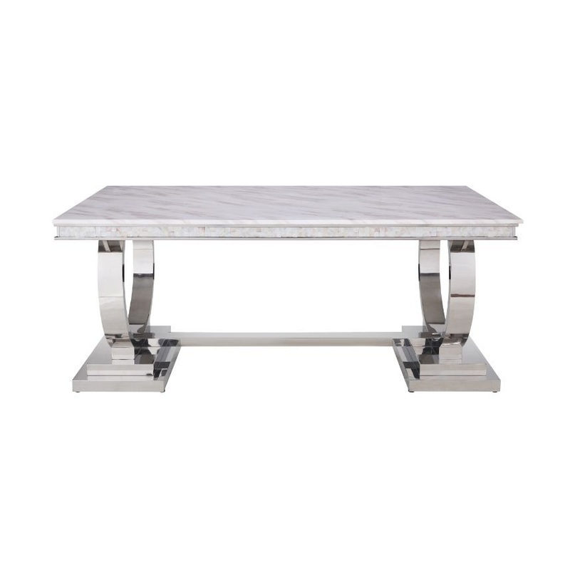 Zander – Dining Table – White Printed Faux Marble & Mirrored Silver Finish