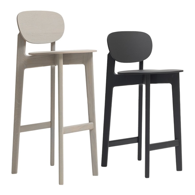 The shells consisting of moulded wood appear light and inviting. ZENSO BAR is available either with a wooden seat and back shell, with an upholstered seat and back shell or with an upholstered seat and wooden back shell.ZENSO BAR is available in seat heights of either 65 or 80 cm, each with a footrest.