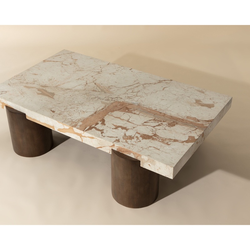 The Zorro Coffee Table takes elevated luxury to the next level with its stunning Italian crema breccia marble table top and solid mango wood legs. Uniquely elegant with endless visual appeal, this is a beautiful piece that can stand on its own or complement a variety of aesthetics.