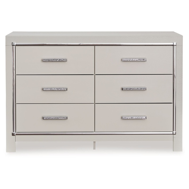 Bright, bold luxury. This dresser dazzles with its attention to detail. Your love of glamorous style is reflected in its all-over faux gator pattern in a metallic finish, exquisitely paired with faceted chrome-tone details. Complete with smooth-gliding storage drawers, it inspires you to live luxuriously every daywhether dressing up to go out or dressing down to stay in.